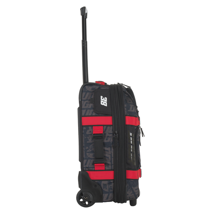 - Custom in-line skate wheels and locking retractable handle provide optimum mobility